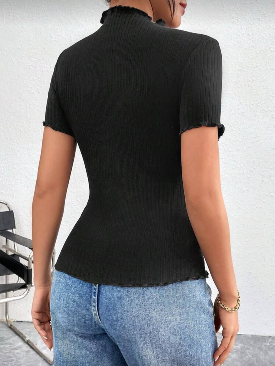 🍃تیشرت یقه ایستاده کبریتی رنگبندی:شش رنگ (مطابق عکس)🌈 قد کار بلند حدود ۶۰ س 🪻جنس: پنبه کبریتی 🪻سایزبندی: فری سایز(۳۶_۴۴)